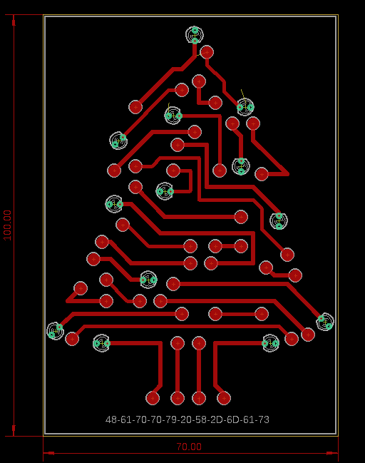 With Christmas around the corner I was thinking about a neat gift idea for my relatives and friends. I recently ordered a couple of pcb's for a different project and I figured it would be fun to make Christmas cards from pcb. In addition to being a fun idea it's also very practical. I design them once and then simply order them. So I went online to do a bit of research and came across this image which I then used as my primary inspiration.
